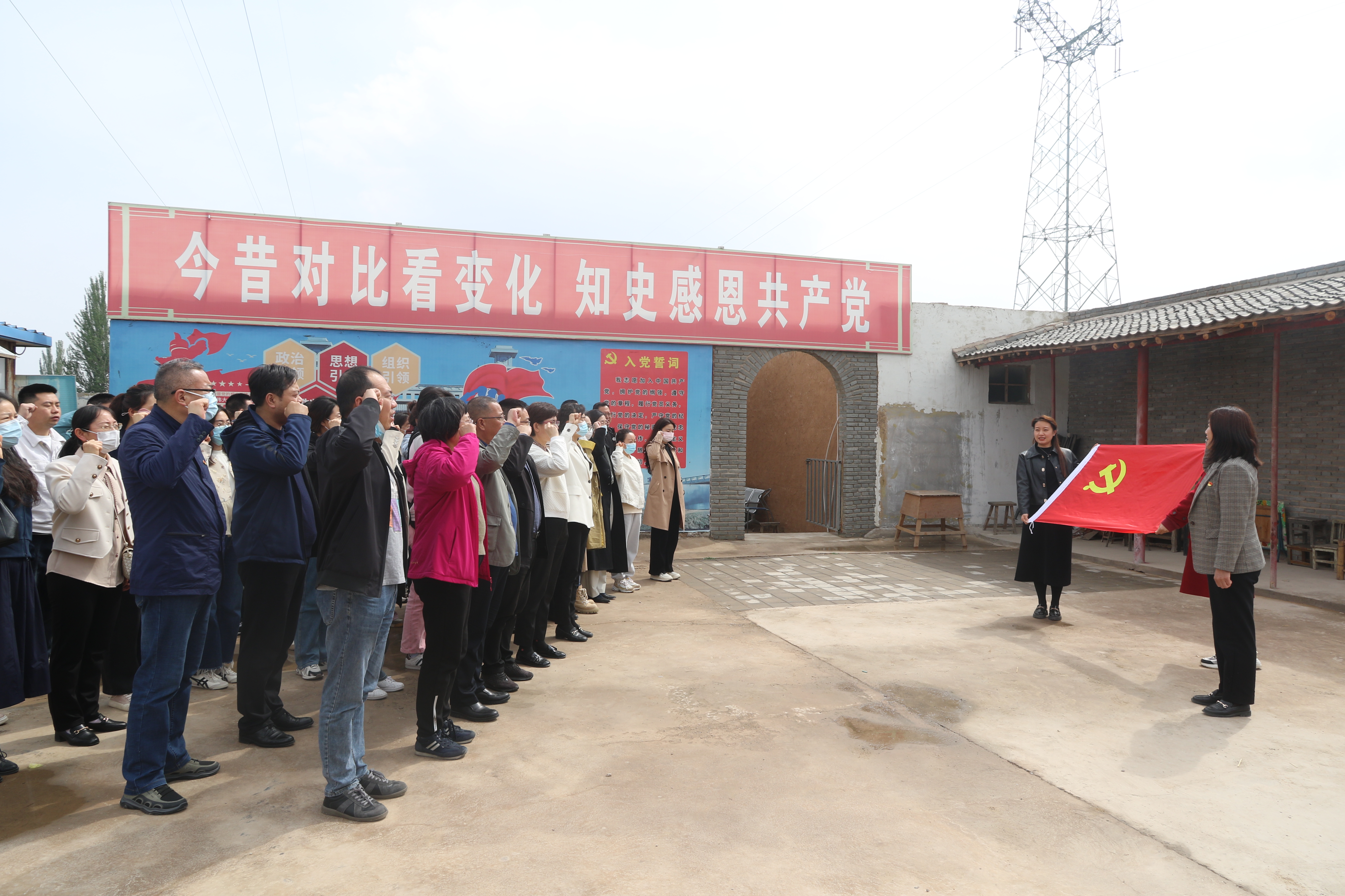 在镇史馆的院子里,校长陶玉凤同志带领全体党员干部在庄严的党旗下,重温入党誓词。入党誓词中的每一句话又一次激荡在党员的胸膛,像惊涛拍岸一样,给予党员干部奋进新征程的强大力量,也生动诠释了党员干部继承先辈遗志、勇毅前行的家国情怀。