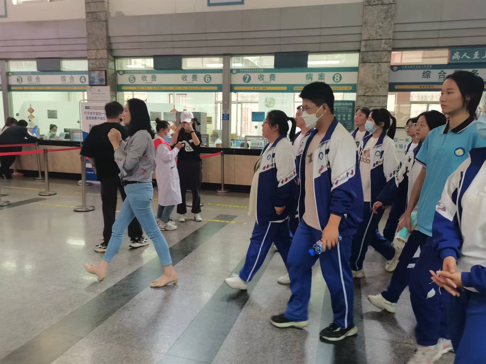 为进一步贯彻新课程理念、迎接新高考改革,落实《宁夏回族自治区深化普通高等学校考试招生综合改革实施方案》,推进银川市新课程新教材实施国家级示范区和示范校建设,深化普通高中课程改革和高考综合改革,2023年5月17日下午,银川市第二十四中学校长张志怀、德育工作处主任马涛、团委书记杨芳丽及相关教师带领高一年级部分学生前往宁夏回族自治区人民医院西夏分院参加了职业体验实践活动。