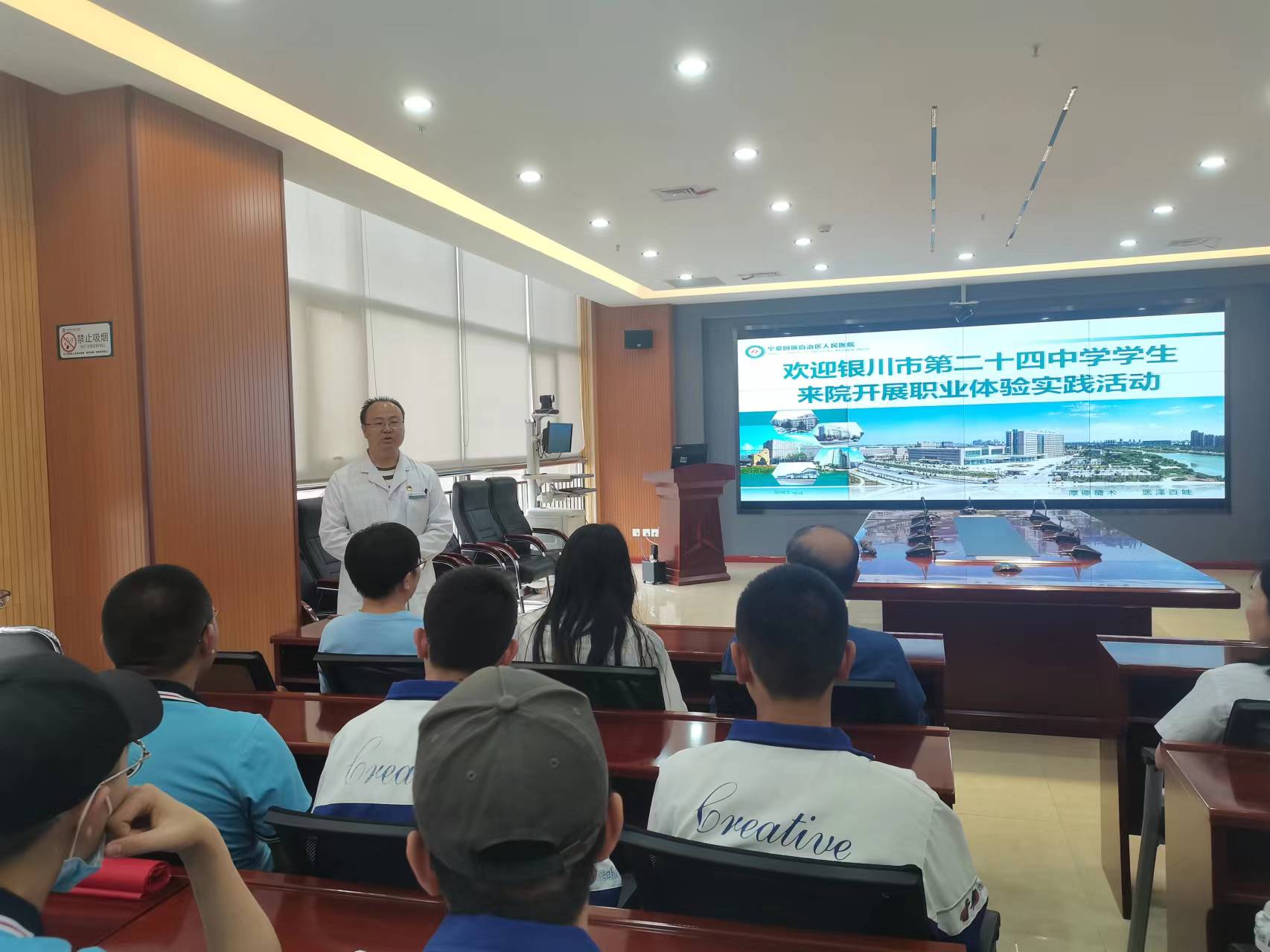 座谈结束后,张志怀校长衷心感谢了西夏分院医护人员对银川市第二十四中学师生的热情接待和耐心讲解。希望同学们谨遵教诲,尽早了解自己,了解各种职业,明确学习目标,规范学习行为,激励学习态度,自我分析,自我理解,合理规划自己的人生,实现自己的人生目标。