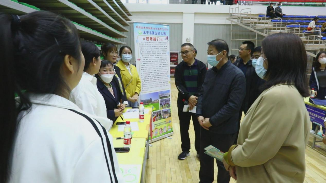 此次招聘会共邀请区内外150家用人单位来校招聘,涉及公办、民办幼儿园、早教机构、培训机构等各类企事业单位,现场提供2042余个优质的就业岗位,吸引了近1500名毕业生入场求职。招聘会现场人头攒动,毕业生们手持自己精心准备好的简历,根据用人单位的招聘信息,结合自己的就业意向,积极向心仪单位投递个人简历。其间,校党委书记孙武平、校长陶玉凤、副校长葛宗泽、纪委书记麻惠丽深入校园双选会现场指导就业工作,和企业招聘负责人深入交流,了解用人单位的情况,询问他们的招聘需求,同时向用人单位推荐我校优秀毕业生。