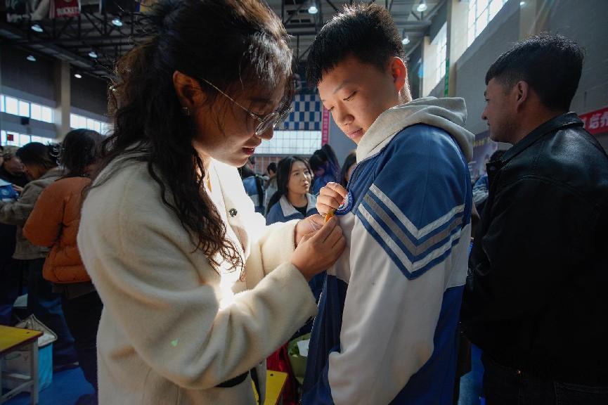 古有冠笄之礼,今有徽章为证。家长亲手为学子佩戴成人徽章,朱红丝带系住的是传统礼序,更是“修身齐家治国平天下”的使命传承。