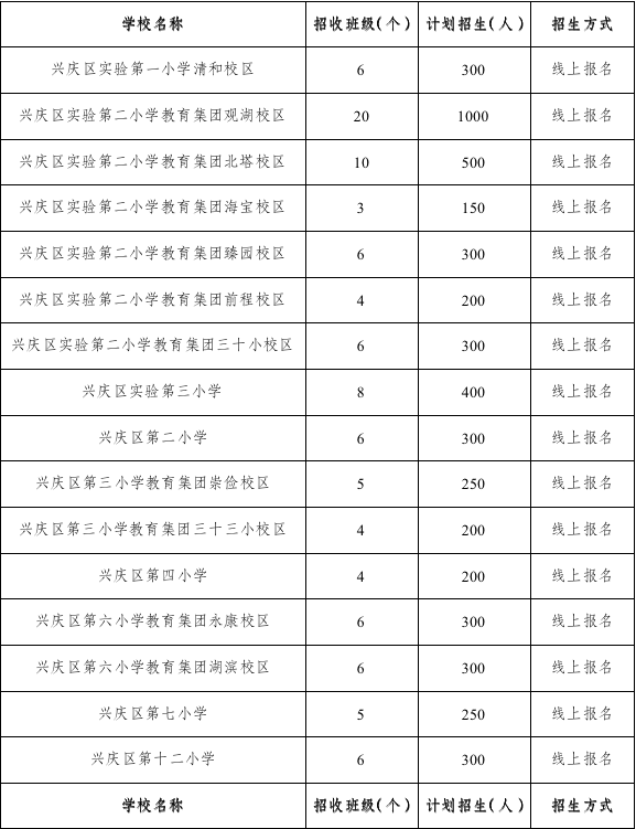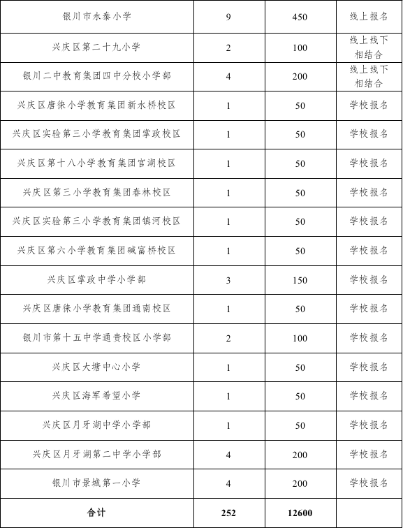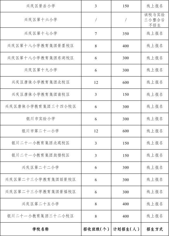 兴庆区2023年公办小学招生计划