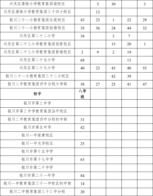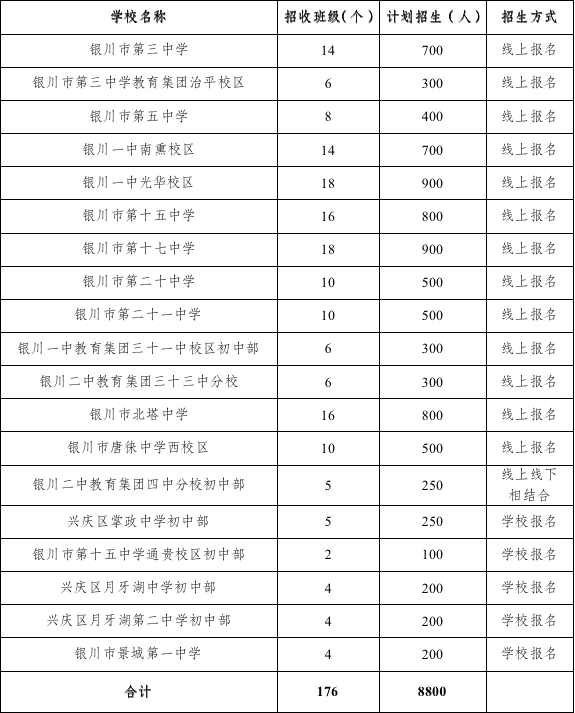兴庆区2023年公办初中招生计划