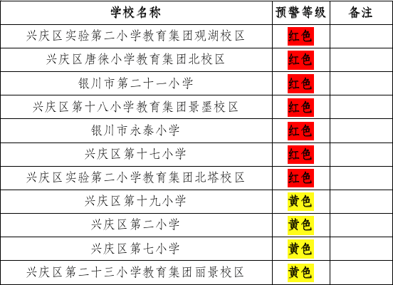 现将2023年兴庆区城市区域公办中小学招生预警情况提示如下: