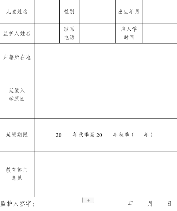 延缓入学申请表