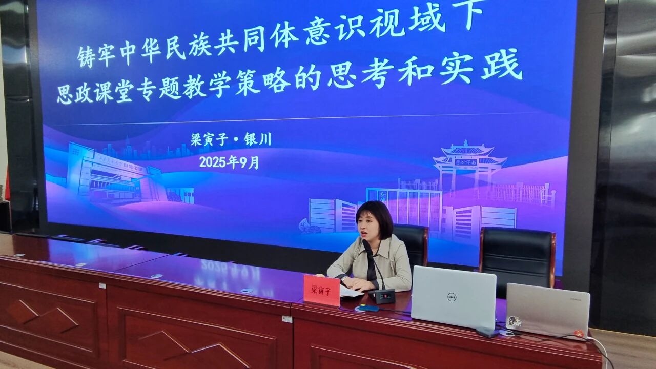 此外,梁寅子老师还带来了专题讲座《思政课铸牢中华民族共同体意识的教学路径与实践探索》。她在讲座中结合自身教学经验,从理论支撑、课程设计、教学方法等方面进行了深入解读,为在场教师提供了兼具指导性与可操作性的教学建议,有力支持了教师们破解教学难点、提升思政课育人实效。