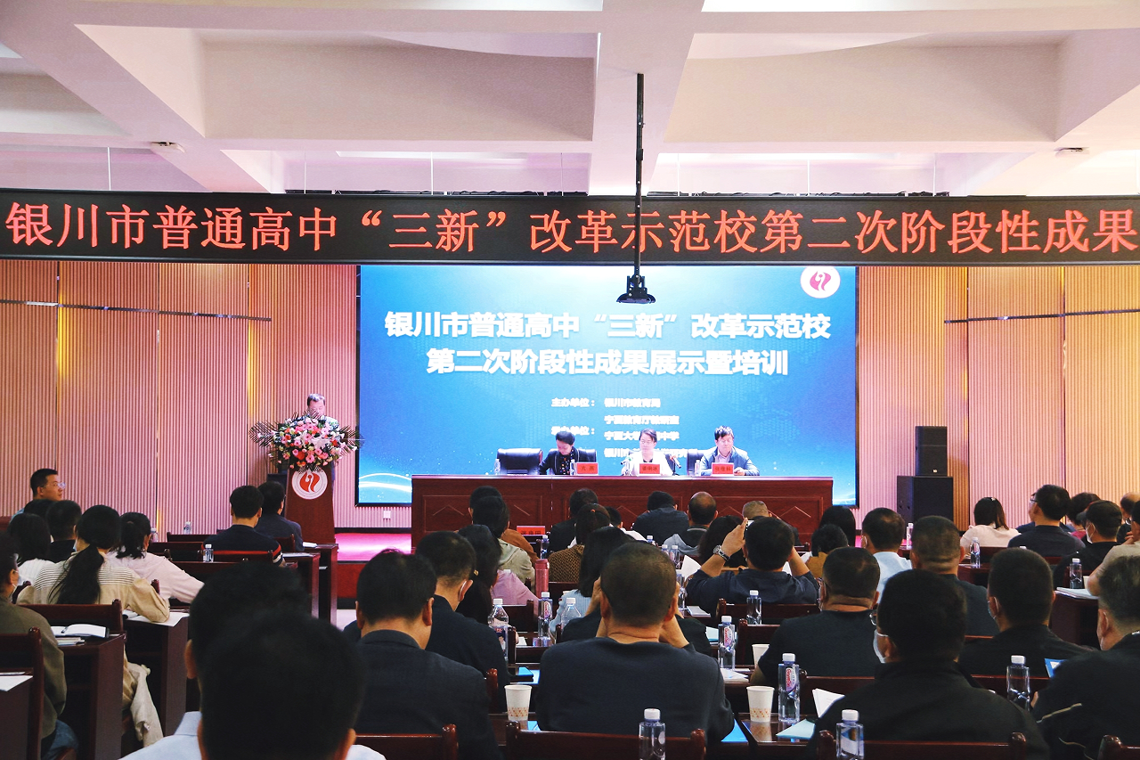 为全面贯彻党的二十大精神,落实立德树人根本任务,发挥示范校建设的示范引领、辐射带动作用,搭建校际间相互促进、共同成长的交流平台,推动我市新课程新教材实施水平的整体提升。5月30日银川市开展2023年普通高中“三新”改革示范校第二次阶段性成果展示活动。活动由银川市教育局、自治区教育厅教研室主办,银川市教育科学研究所和宁夏大学附属中学承办,市教育局副局长姜俐冰出席活动开幕式并讲话。