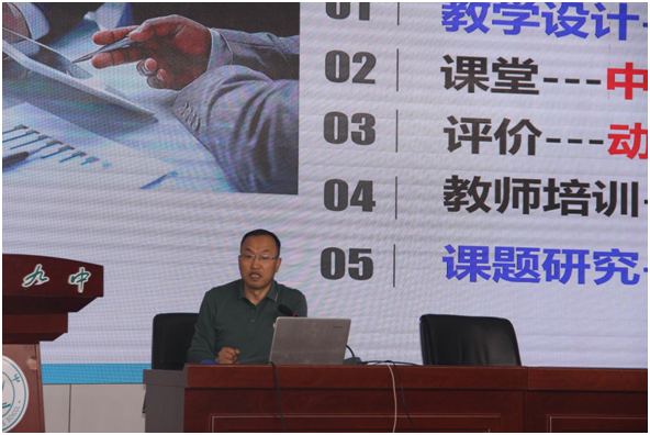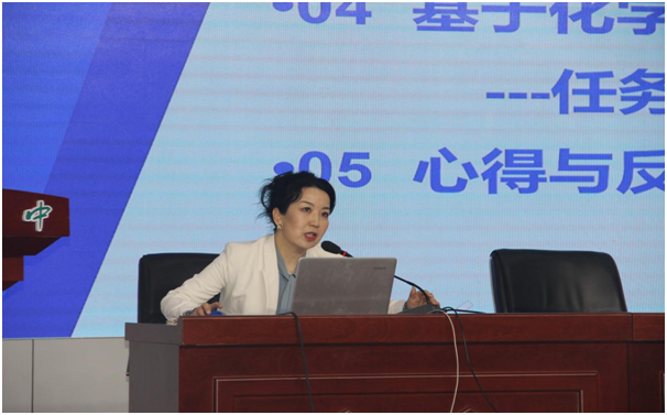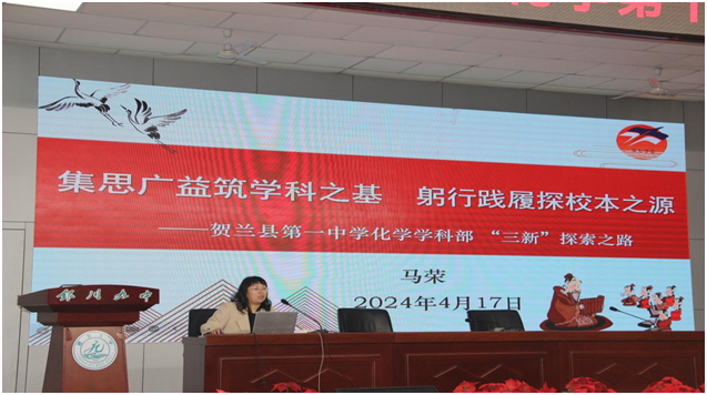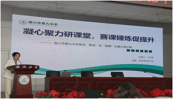 丁玉芳老师以《凝心聚力研课堂,赛课锤炼促提升》为主题,分享了三新背景下银川九中教学新样态、银川九中化学组精研教学并在2023年各类比赛中取得的丰硕成果、基于化学核心素养的大单元教学设计案例、以及自己参加“推变课”的心得。
