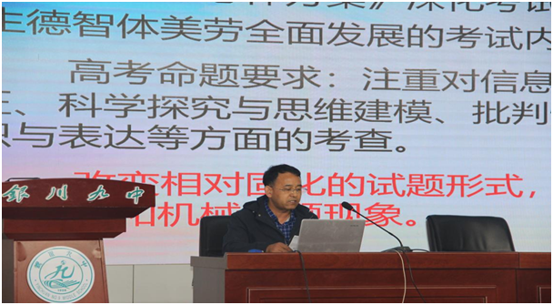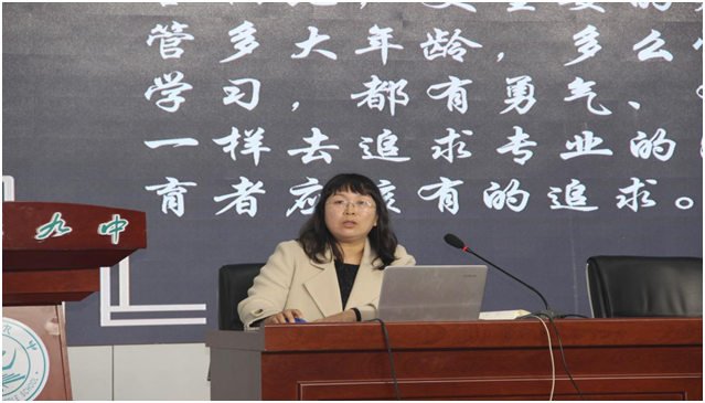活动第三项,银川市第九中学的丁玉芳老师、石志忠老师和贺兰县第一中学的马荣老师分别作讲座,分享了课题研究与教研实践的内容与心得。