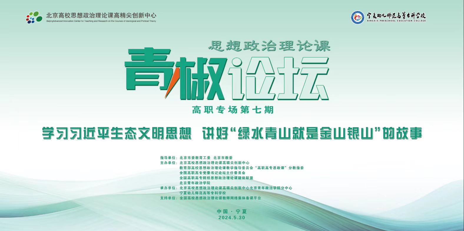 全国高职院校第七期思想政治理论课“青椒论坛”,将于2024年5月30日在宁夏幼儿师范高等专科学校举办。