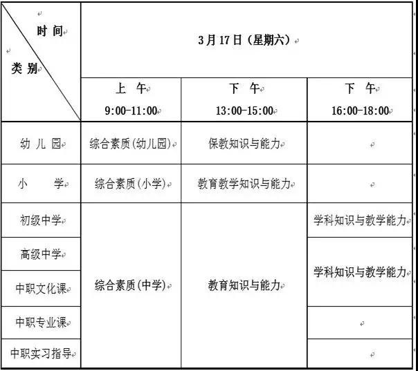 2018年上半年中小学教师资格考试笔试日程安排表