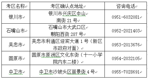 宁夏各考区名称、地址、咨询电话